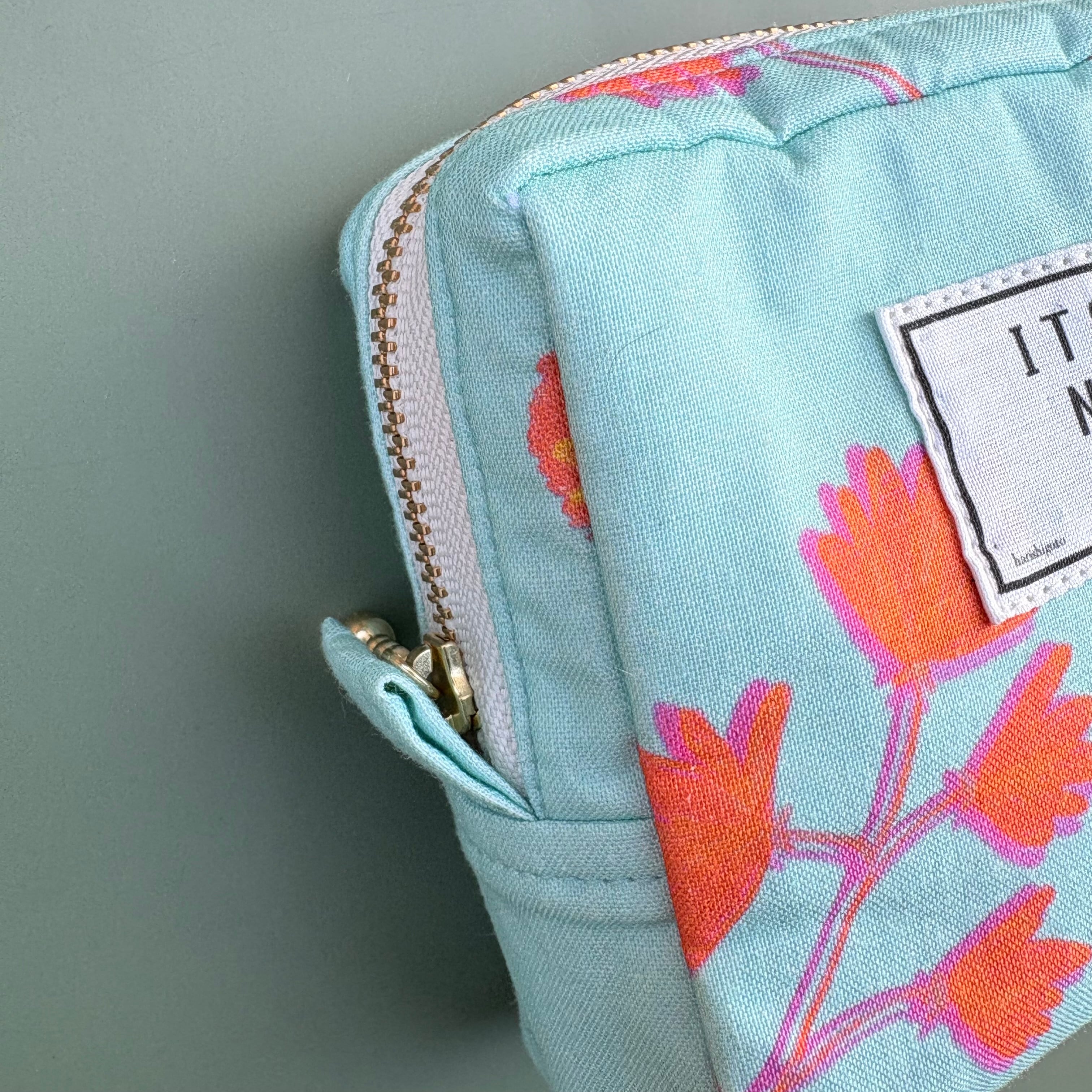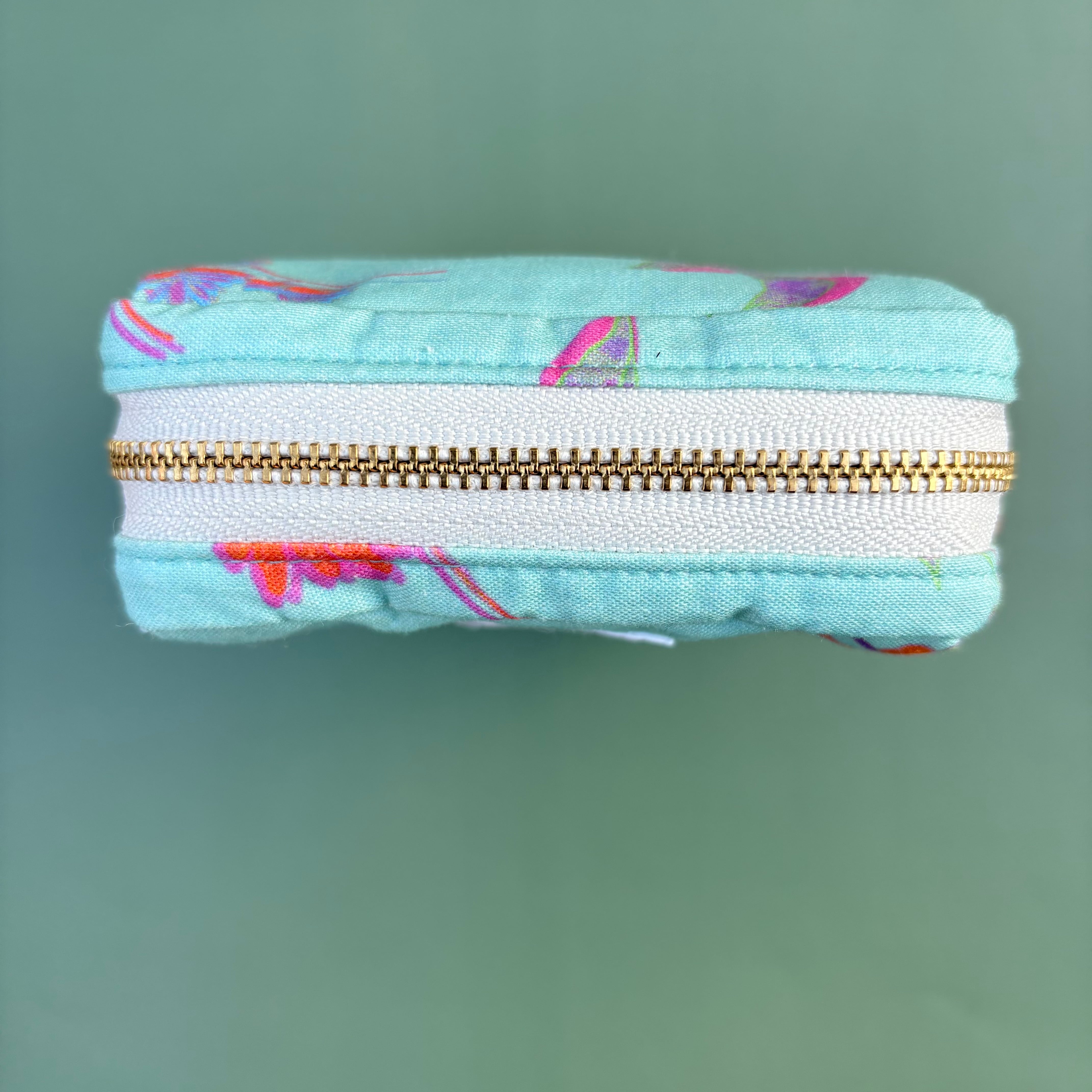 爽やかなブルーグリーンに、花柄が映える